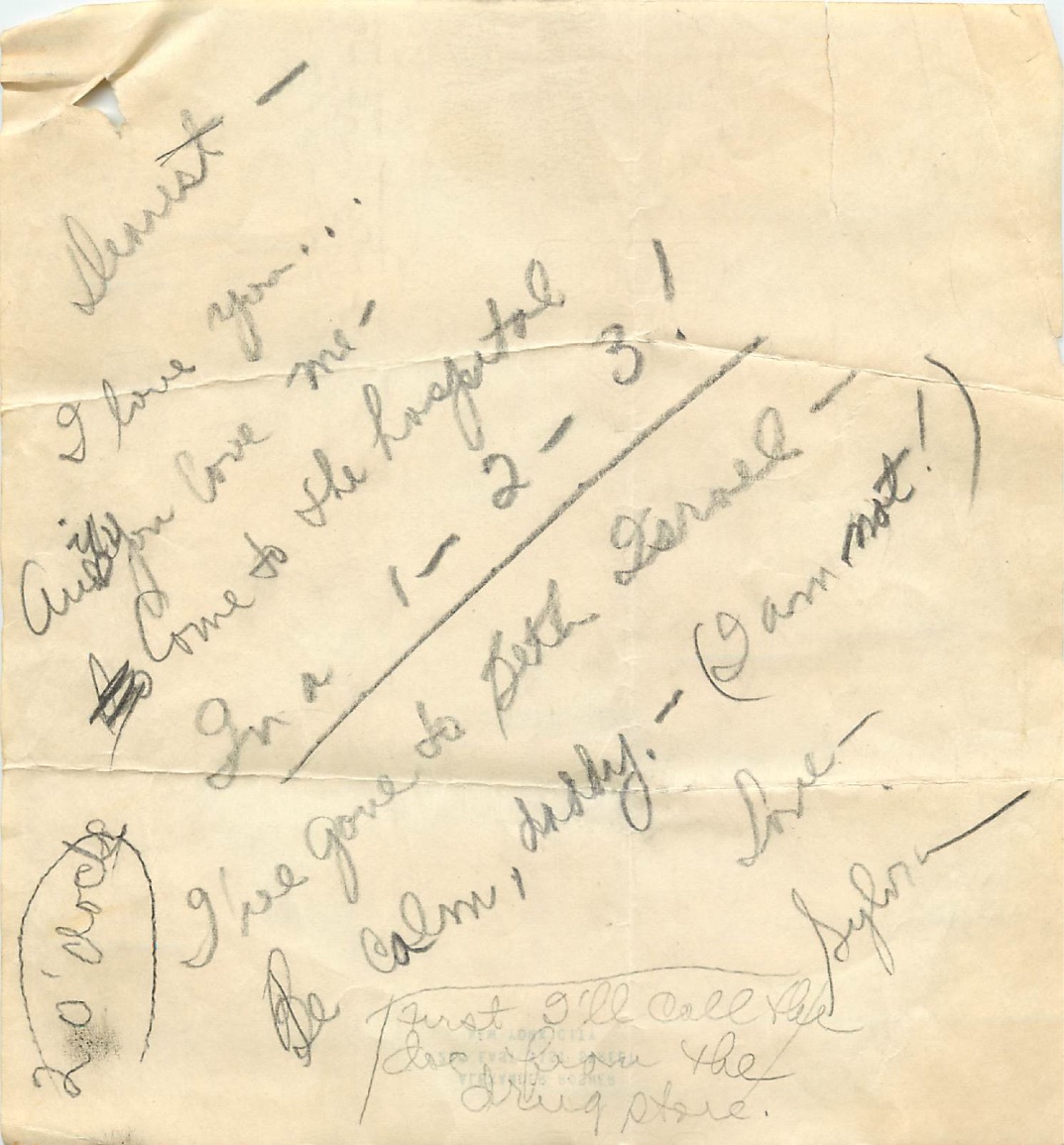 This note, scribbled to Alex on June 8th, 1943, the day Sylvia gave birth to my Aunt Adrienne, encapsulates Sylvia’s spunk and charm. On my best days I can only hope to be as clever and lovely as she when she was in labor.
