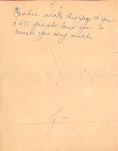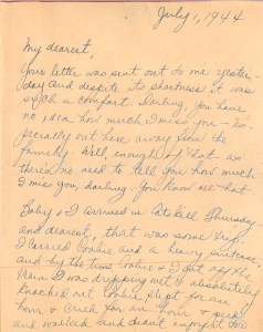 Or else I can tell you how jealous she got when she saw one father here playing with his little girl – and his girl kept laughing and saying “daddy”. Adrienne walked over and stood there. Then she lifted her arms and said nodding her head, “daddy.” Darling it was all I could do to keep from crying … She misses you, dear and she’ll certainly enjoy your presence here when you come up. (and so will I!)