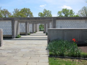 The peaceful and beautiful design of the cemetery really gave the area a feeling of respect. I could hear a funeral ceremony going on in the background and see  graves that were recently engraved. I hate the idea that all of the people buried in the cemetery are there because they were part of a war.