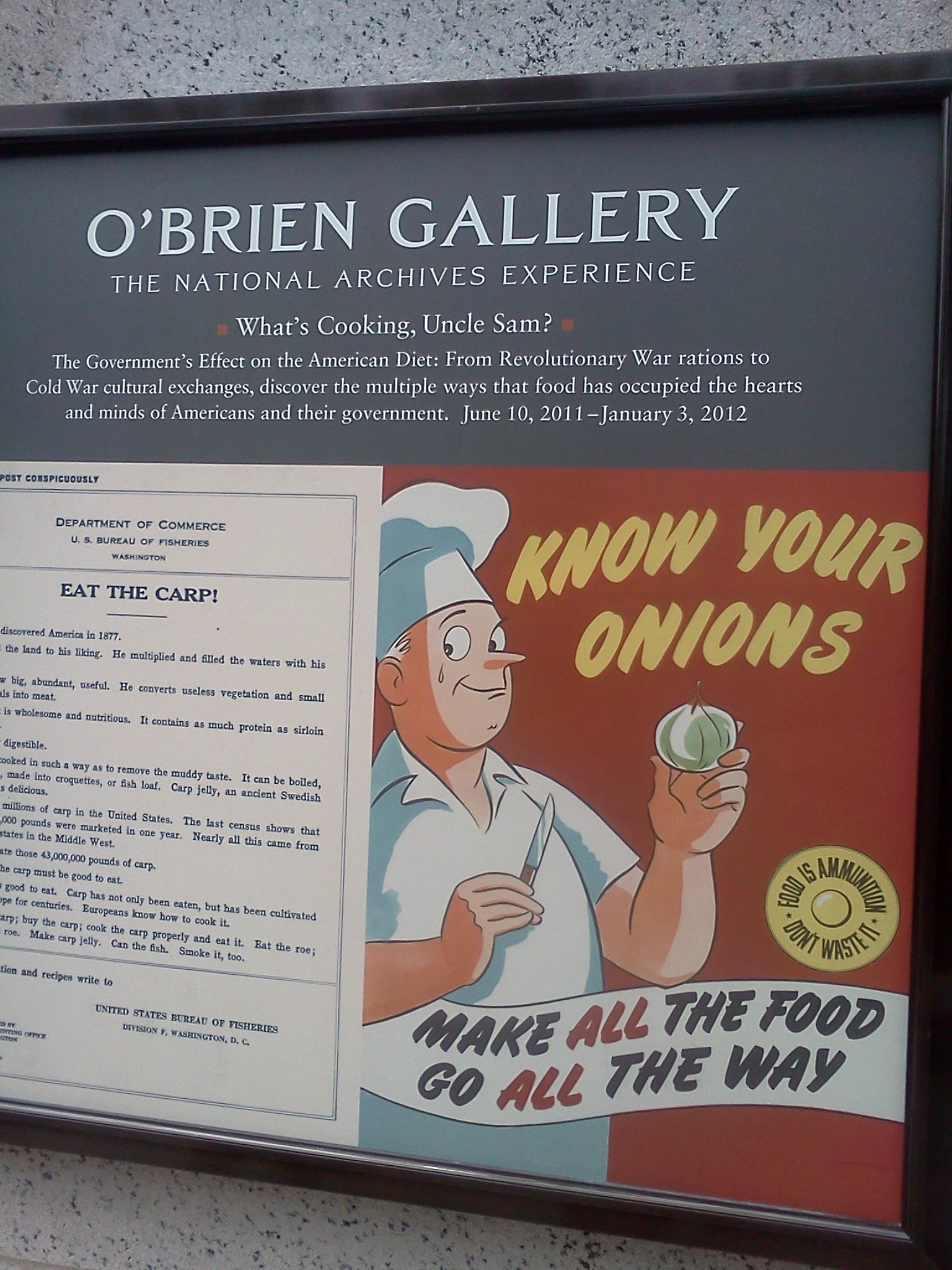My main problem with the exhibit was that it gave the viewer a sense that today all of our food is well-regulated and safe. The exhibit was characterized by the  “look how far we’ve come” syndrome that is consistently touted in history books, museums, and the media. However, after being overwhelmed by other museums in this city I was relieved by the lower key, more manageable Archives. If you are looking for a fun way to spend some time, explore the National Archives’ site.