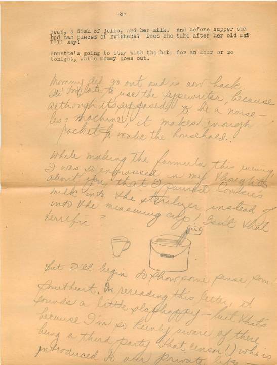 While making the formula this evening I was so engrossed in my thoughts about you, that I poured Cookie’s milk into the sterilizer instead of into the measuring cup! Isn’t that terrific?
