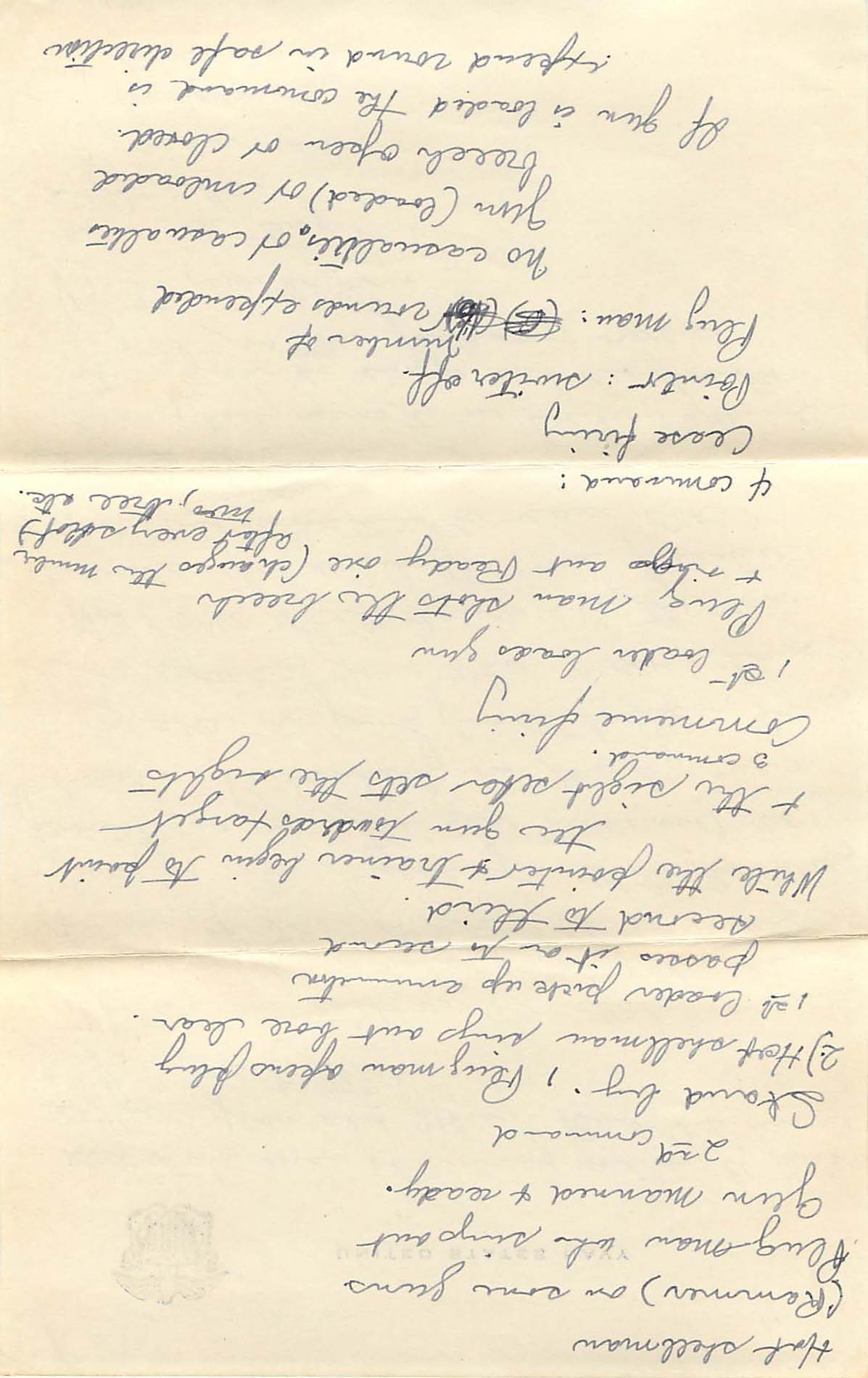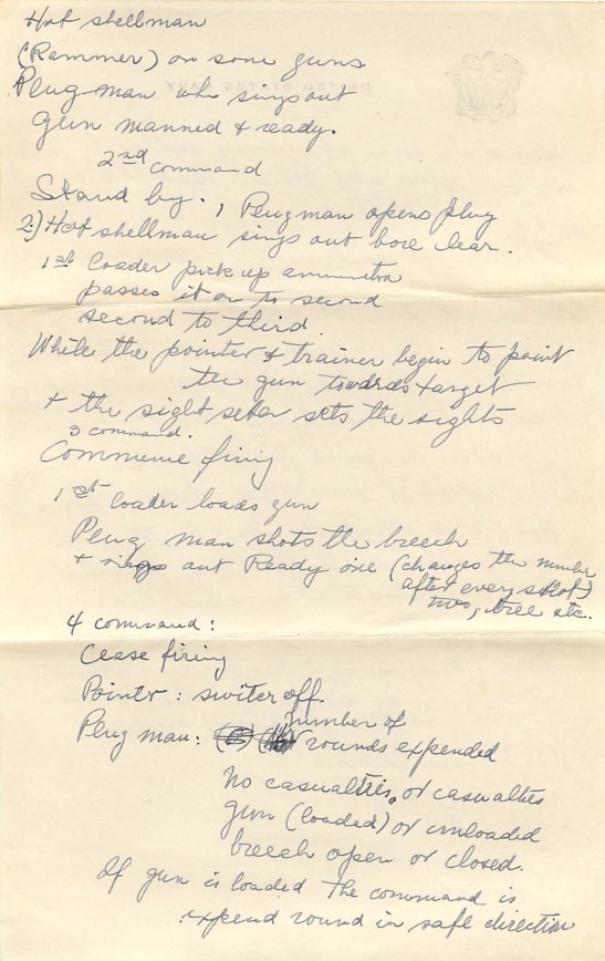 This letter moves from a description of this performance, meant to boost morale, to the list of gun commands that Alex must learn. I did not type all of these out, though they are posted here if you are interested in reading them. I can’t help but notice that this letter moves from the USO show to gun commands and then abruptly to a conclusion from a loving father. In this letter the violence of war is juxtaposed repeatedly with the nostalgic, cheesy, luxury of a “homey” performance and the loving sentiments of a father. The letter concludes, “The orders on machine guns are brief and I’ll tell you in another letter. The projectiles are beeshes because they are heavy on the big gun – Goodnight sweet, I love you very much.”