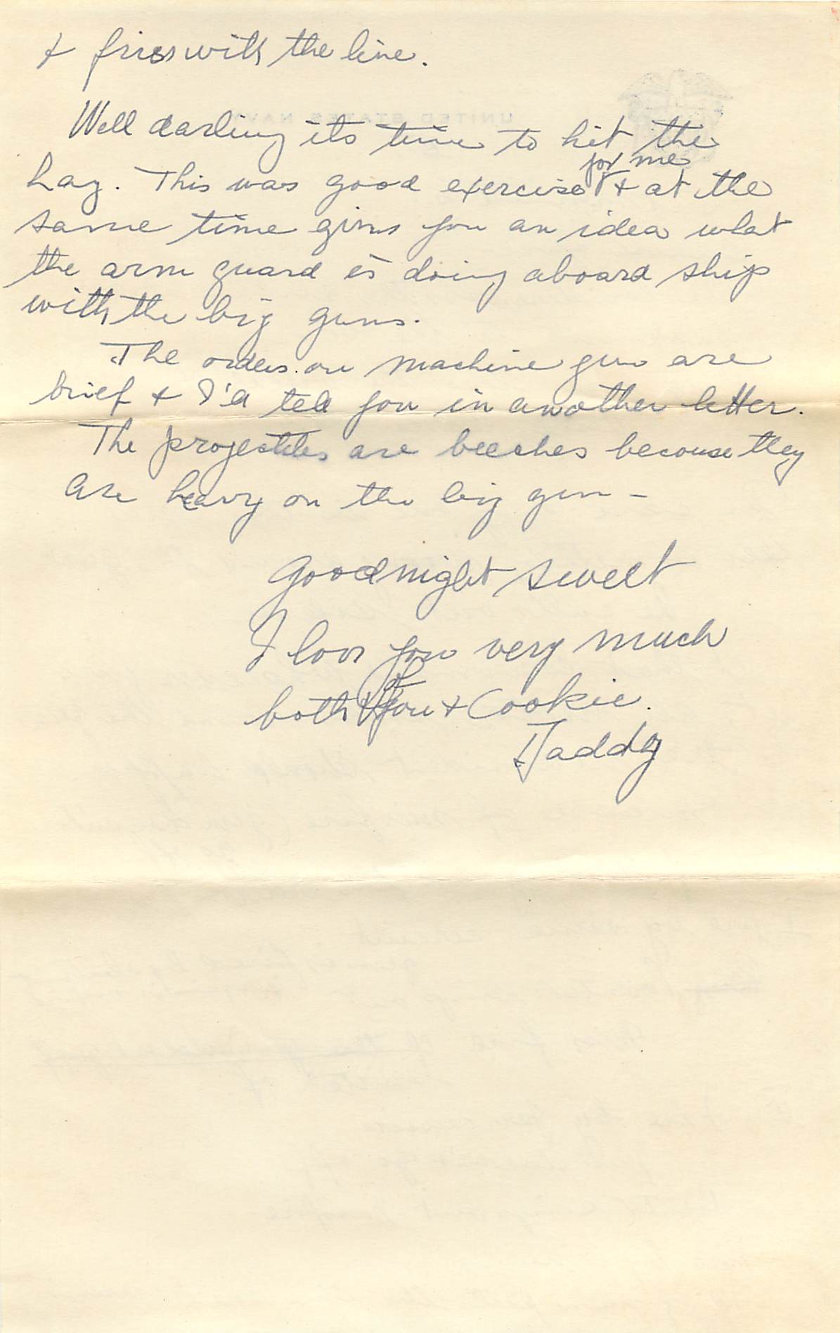 Well darling its time to hit the hay. This was good exercise for me and at the same time gives you an idea what the arm guard is doing aboard ship with the big guns.
