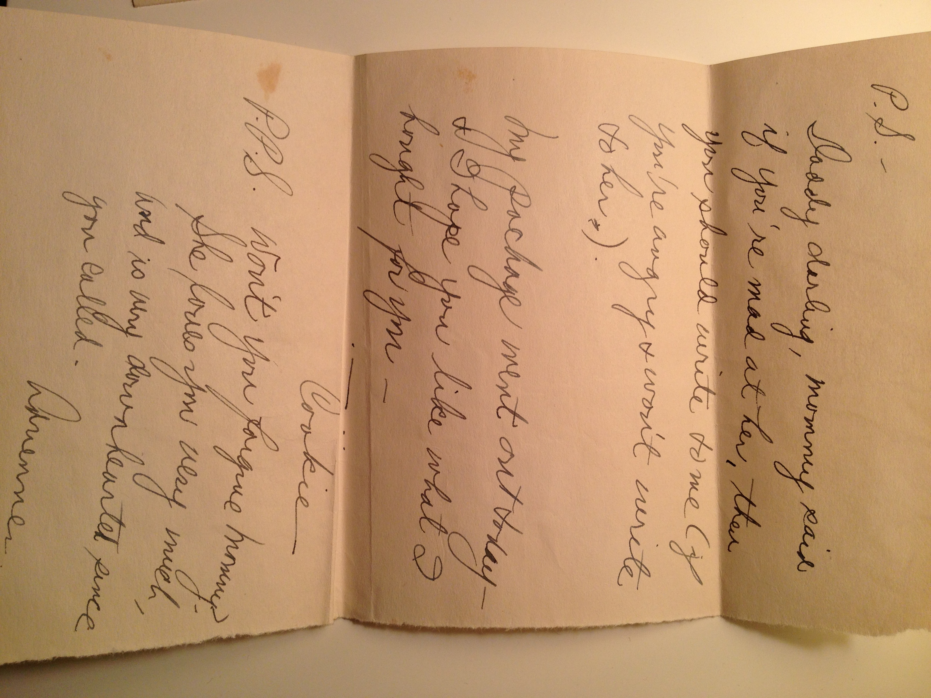 P.S. Daddy darling, mommy said if you’re mad at her, then you should write to me (if you’re angry and won’t write to her.)