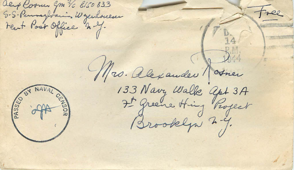 Alex’s dreams of a country home, in a place like Croton-On-Hudson, is news to me. If I have read it before, I’d forgotten it. Or maybe I chose to believe that my grandparents somehow didn’t hold dear that suburban American dream and that they chose to live in New York City, rather than were forced to. Alex’s dreams kept him company on long, lonely night watches. his plan was not extravagent, it sounds like the dreams many sailors probably wrote home about. It’s packed with practicality, too, he’d stay with his family in the city while he worked, go home on the weekends, and maybe after a while get a “little car.” He and Sylvia never did leave the city. And after he married my grandmother, Sophie, who worked just ten blocks from where I live now (when I began this blog I worked close to where Sylvia lived and now I live close to where Sophie worked) – they stayed in Manhattan until retirement. So many of these letters are about the monotony of war, and the tediousness of everyday life. To me, protected as I am from the worst of the pandemic by privilege, this feels very familiar. What is there to talk about when you’re locked inside (or on a ship) during a major global crisis?