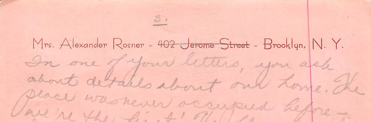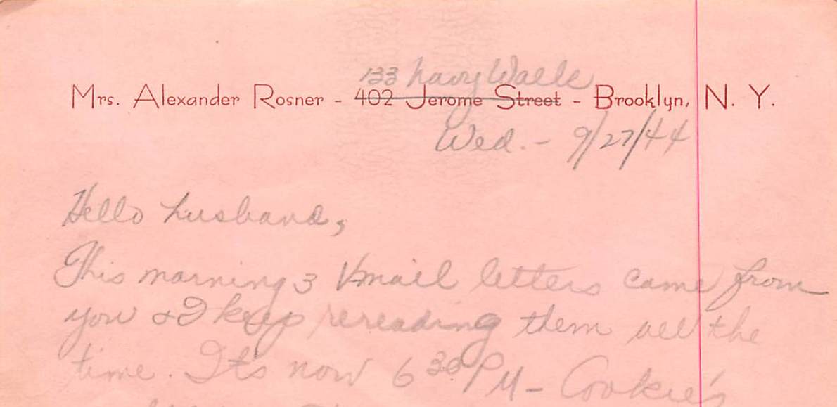 Much of the stationary that Silvia uses to write to Alex has her married name (or, rather, her husband’s name) but her parents’ address on it. Marriage didn’t mean immediately leaving home, though her excitement when they finally get their own space is palpable. This stationary is physical documentation of Silvia’s identity as both wife and daughter – which she navigates throughout the letters. When my grandparents moved to the Navy Yard projects during the war, she continued to use the stationary with the address crossed off.