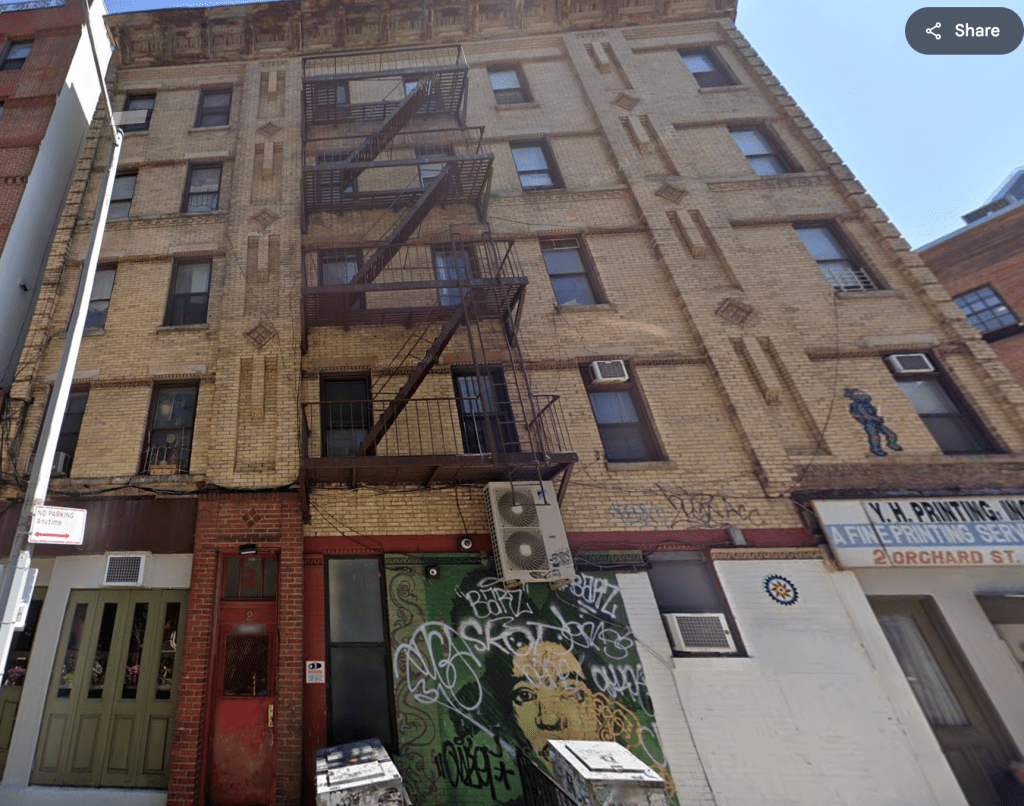 I found their address at 2 Orchard Street on Google Maps and the same building they lived in still stands. The red door is the entrance and it looks like a 5 story walk up building. I’m not sure which apartment they lived in but my quick look on Street Easy shows renovated apartments that don’t give much insight into what they would have looked like 80+ years ago. The building was constructed in 1900 and currently has 12 units.